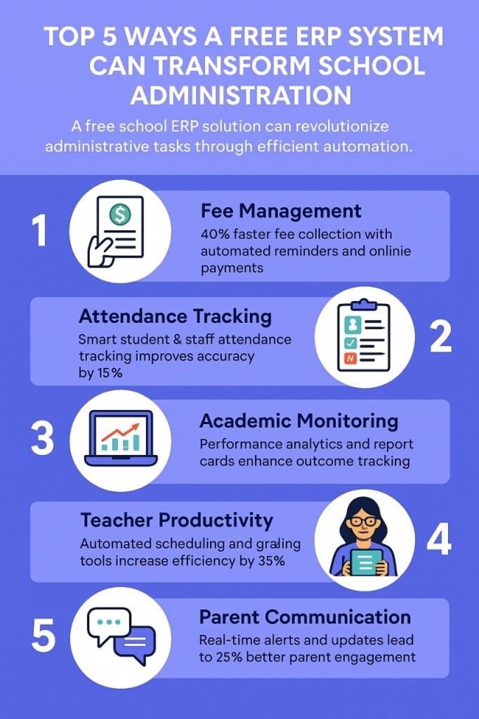 • ERP system for fee, attendance, and academic management,