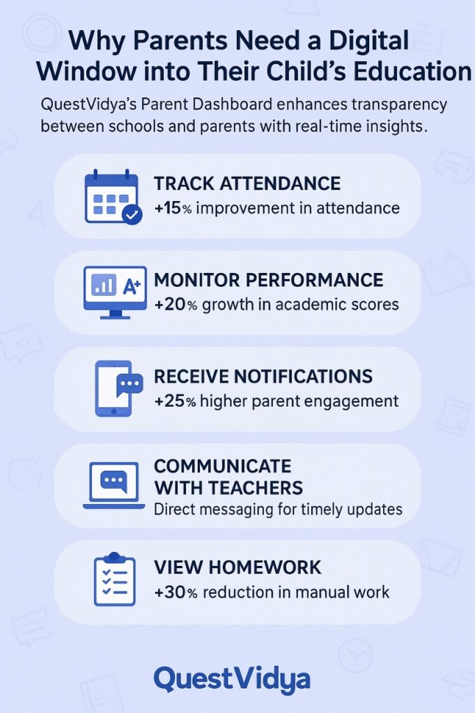 QuestVidya’s Parent Dashboard gives families a real-time digital window into their child’s education.